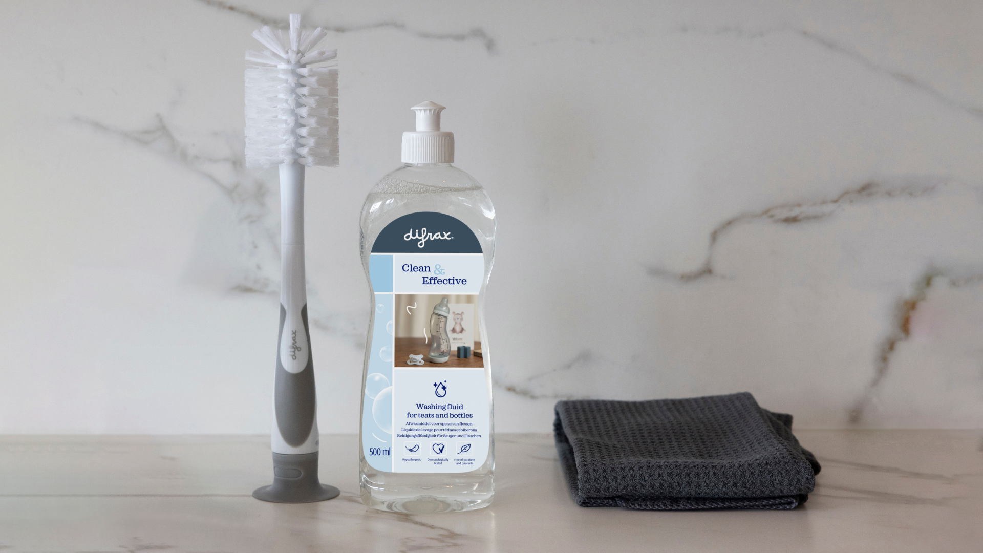 Hygiëne is cruciaal voor je baby. Difrax biedt handige oplossingen voor het steriliseren en reinigen van babyproducten. Onze magnetronsterilisator en steriliseer ei zorgen ervoor dat fopspenen, flessenspenen en babyflessen grondig worden gereinigd, waardoor alle bacteriën worden gedood. Voor dagelijkse reiniging hebben we hypoallergeen en dermatologisch getest afwasmiddel dat moeiteloos alle melk- en papresten verwijdert.