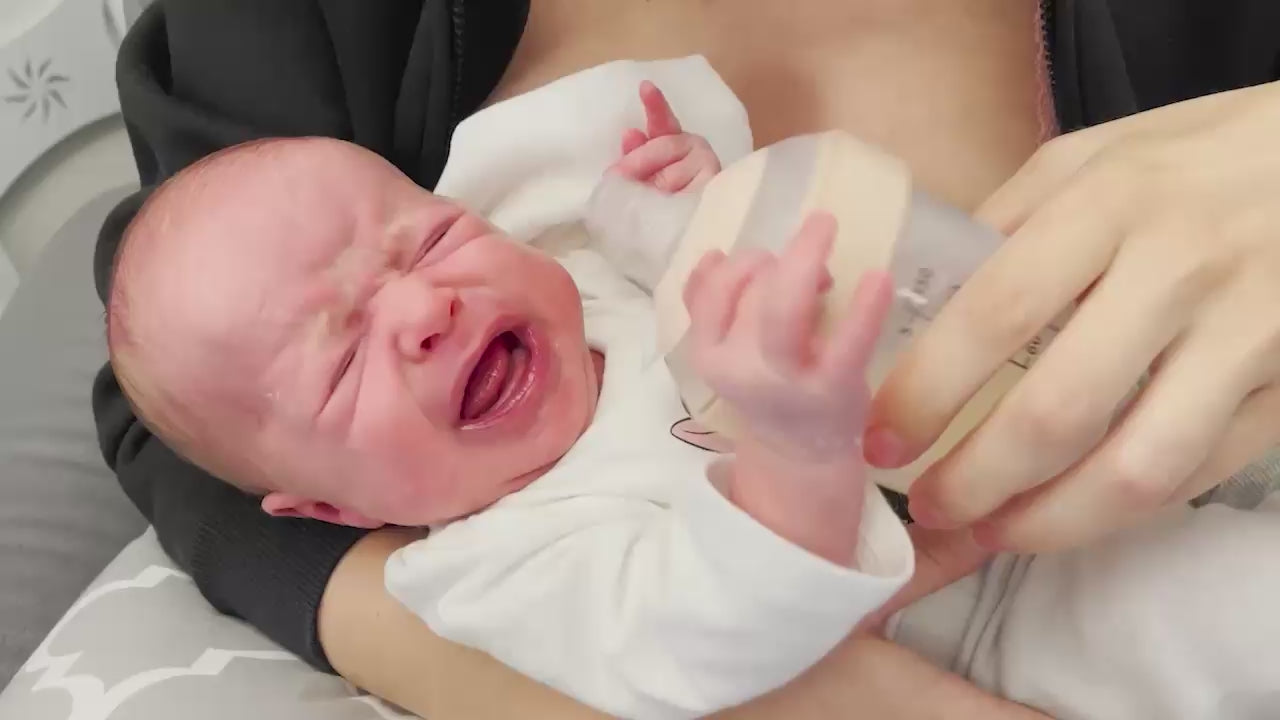Dankzij de brede en stevige basis opent de baby zijn mond in de juiste hoek. Dit bevordert de neusademhaling en vermindert het risico op darmkrampjes.